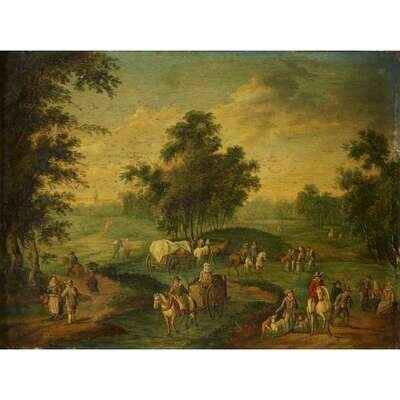 DUTCH OR FLEMISH SCHOOL (18TH CENTURY) EXTENSIVE VILLAGE LANDSCAPE WITH FIGURES