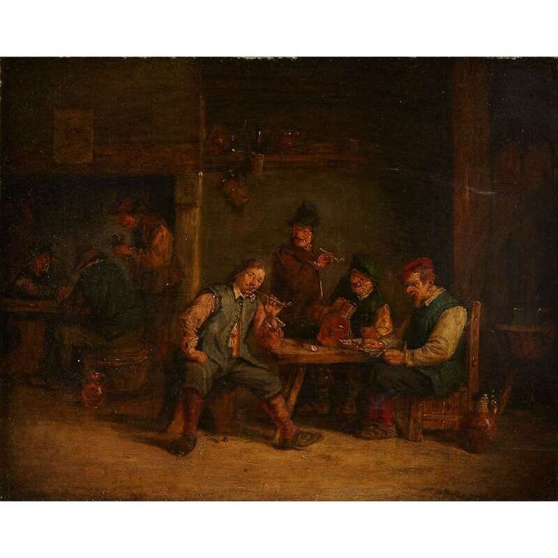 DUTCH SCHOOL (17TH CENTURY) PEASANTS SMOKING IN A TAVERN