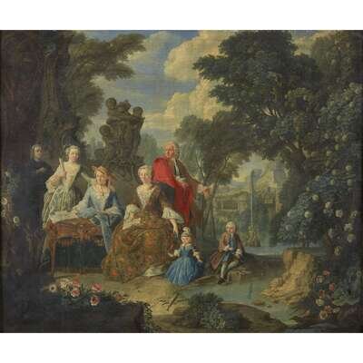 CIRCLE OF JAN JOSEF HOREMANS THE YOUNGER (FLEMISH 1714-1790) ELEGANT FIGURES IN A PARK