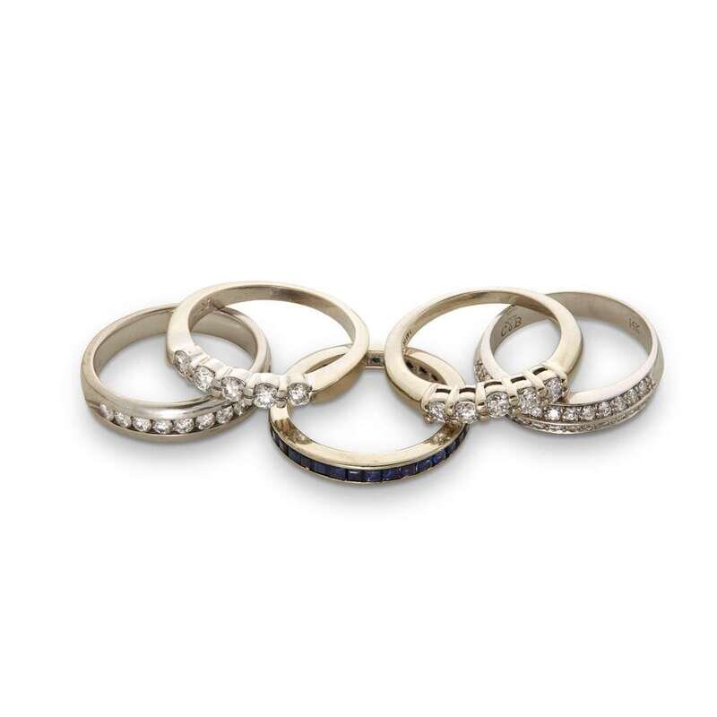 Gross weight: 10.9 dwt.; Ring sizes: 6 1/2 to 7 1/2