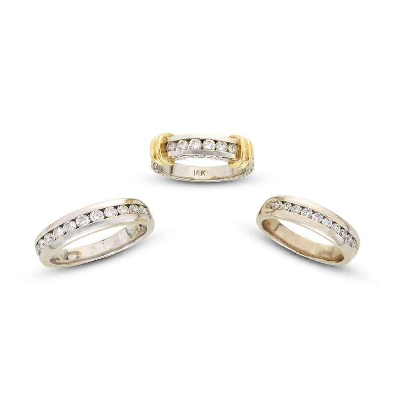 all three signed for fourteen karat and set with round brilliant-cut diamonds; estimated total diamond weight: 1.60 carats.