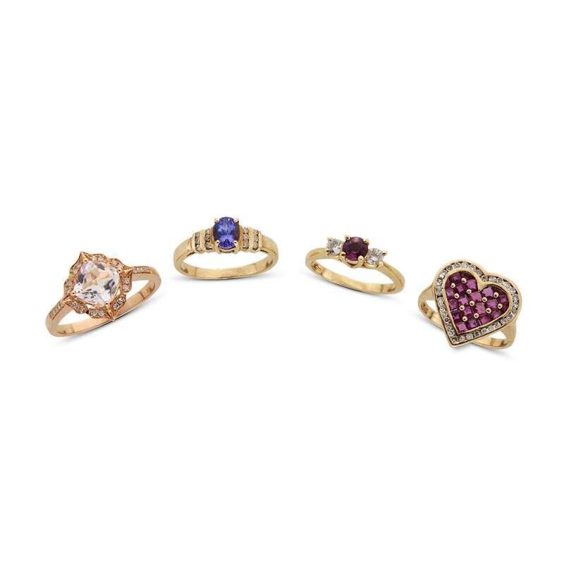 all four signed for fourteen karat and set with round brilliant and single-cut diamonds; estimated total diamond weight: 0.65 carat.