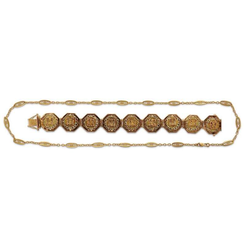 A gold necklace and bracelet