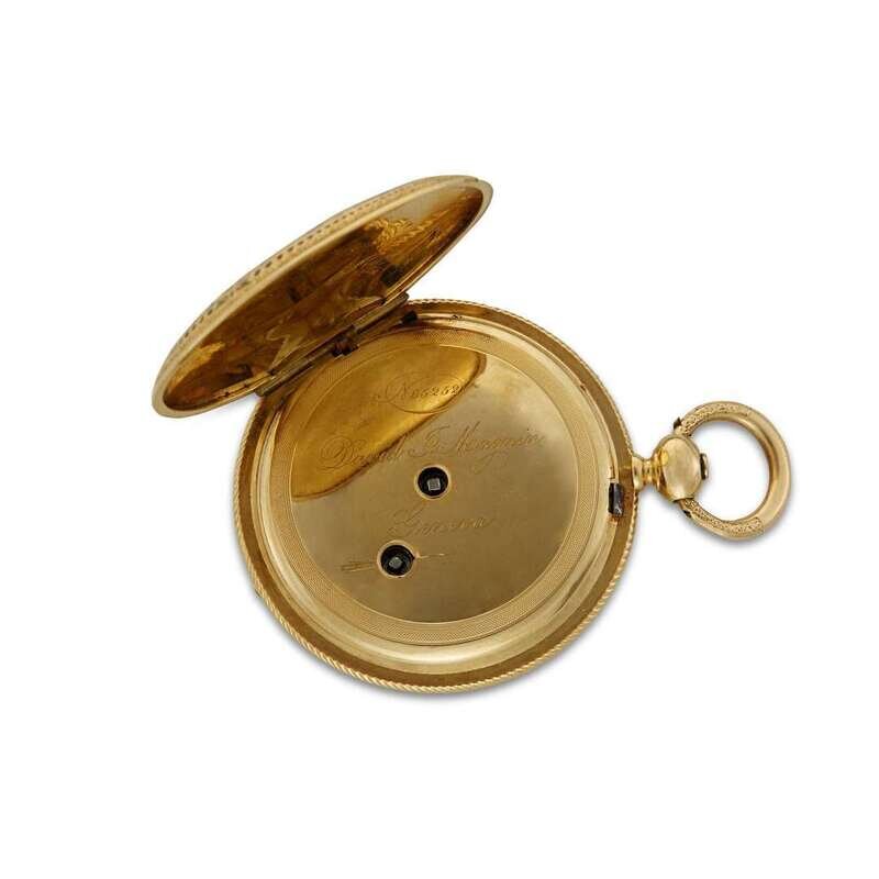 An eighteen karat gold hunting case pocket watch, David J. Magnin swiss, 19th century