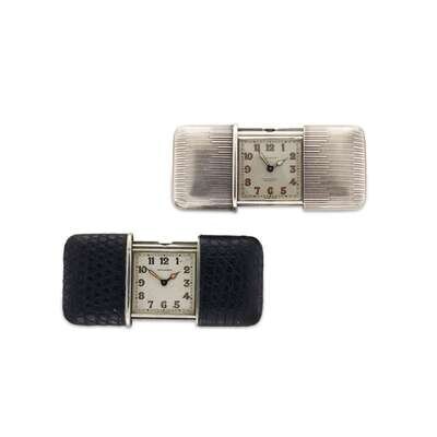A collection of two silver, steel and shagreen purse watches, Movado ermeto
