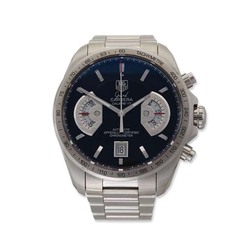A stainless steel automatic chronograph bracelet watch with date, Tag Heuer grand carrera