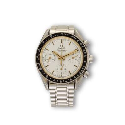A stainless steel automatic chronograph bracelet watch, Omega speedmaster, circa 1979