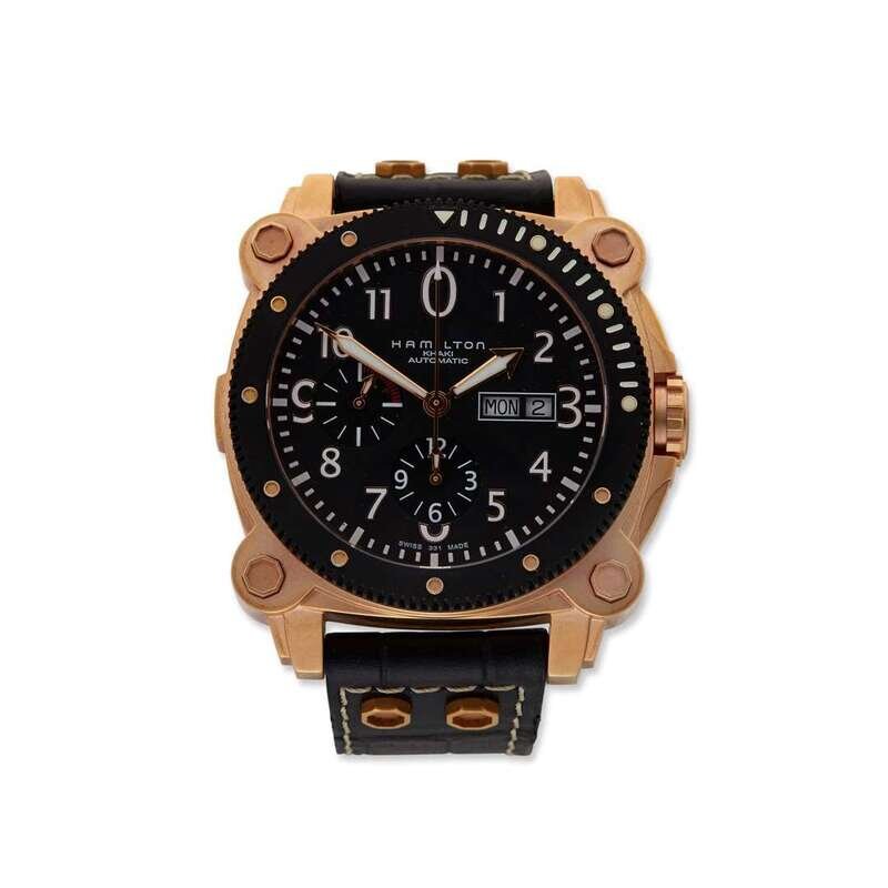 A metal automatic chronograph strap watch with day-date, Hamilton khaki, swiss