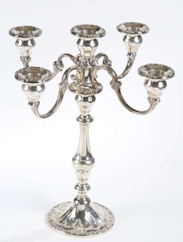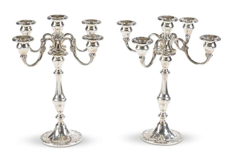 A pair of sterling silver candelabras gorham manufacturing co., providence, ri, 20th century