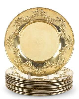 Twelve gold plated over sterling silver bread plates black, starr & frost, new york, ny, late 19th / early 20th century