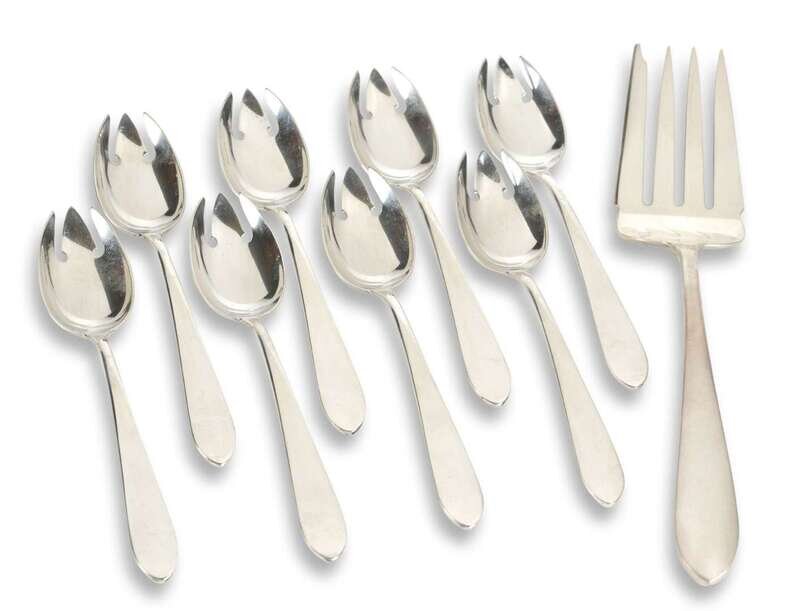 Nine sterling silver flatware pieces s. kirk & son co., baltimore, md, 20th century