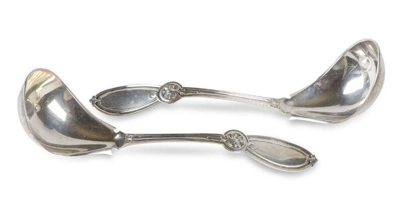 Two sterling silver oyster spoons ball, black & co., new york, ny, 19th century