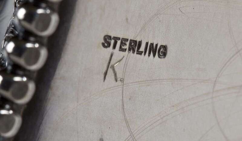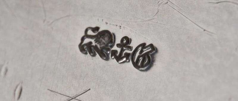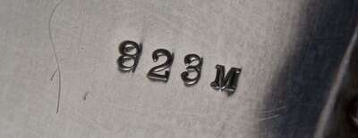 Octagon shape with beaded rim, monogramed with dates.