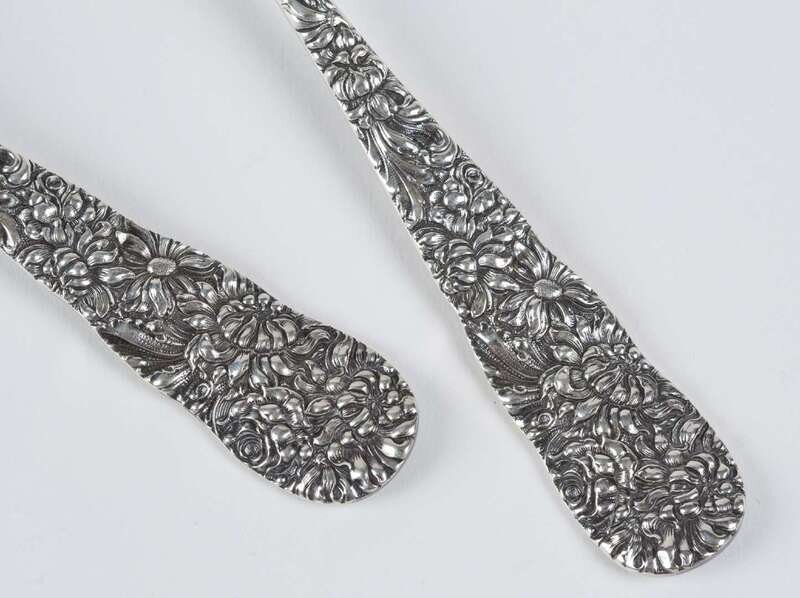 A sterling silver asparagus and tomato servers stieff company, baltimore, md, early 20th century