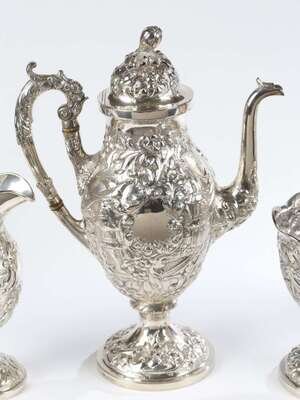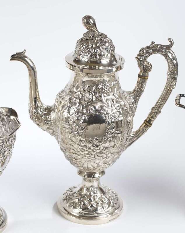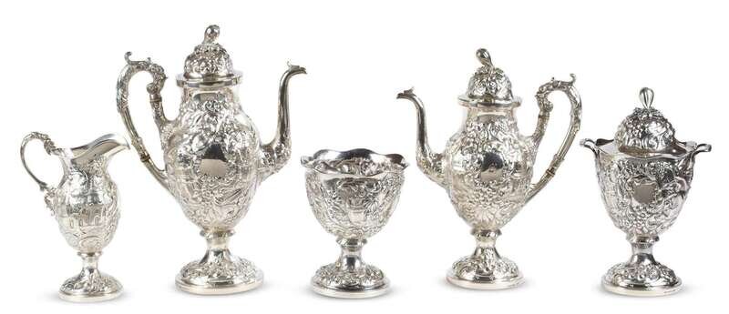 A five piece coin silver tea and coffee service andrew ellicott warner, baltimore, md, 1835 - 1850