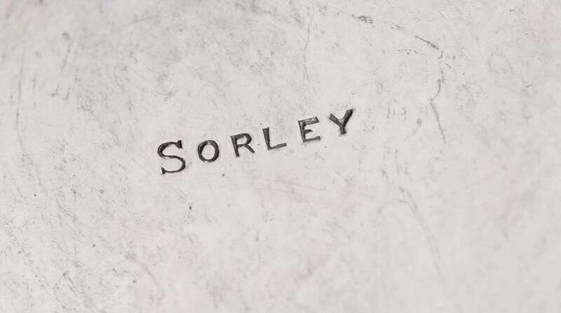 Tapered body with dome lid, from "M.J.M. /August 1927" engraved with Martin family crest and "hinc fortior et clarior."