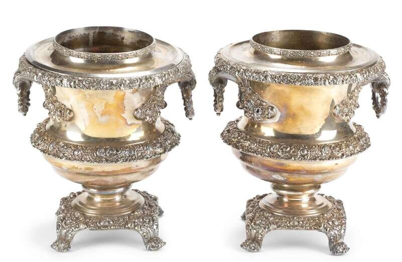 Pair of silver plate wine coolers sheffield, england, 19th century