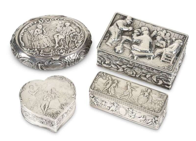 Collection Four silver figural relief boxes