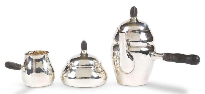 A three piece Danish sterling silver coffee service georg jensen, copenhagen, 1915 - 1927