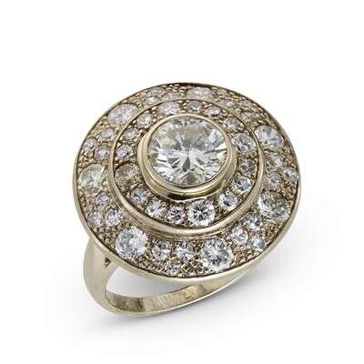 centering one round brilliant-cut diamond, weighing approximatey 1.40 carats, accented by round brilliant and single-cut diamonds; estimated total remaining diamond weight: 1.60 carats.