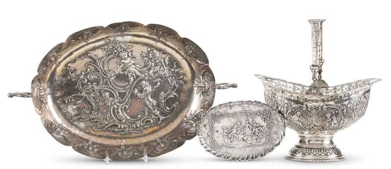 Three pieces of Renaissance Revival silver dishes german, 19th century