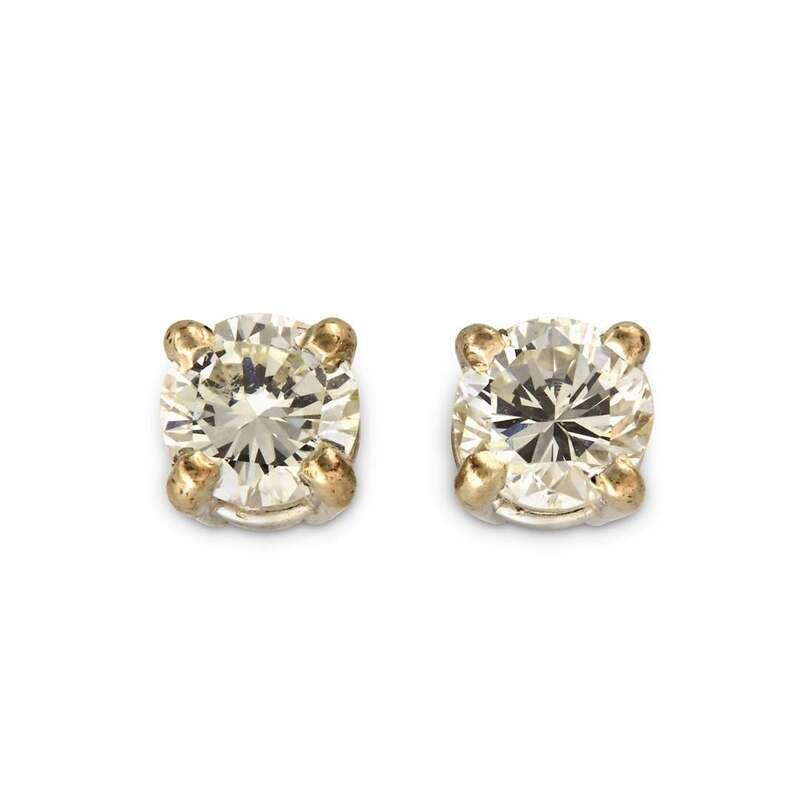 each set with one round brilliant-cut diamond, weighing approximately 0.55 carat.