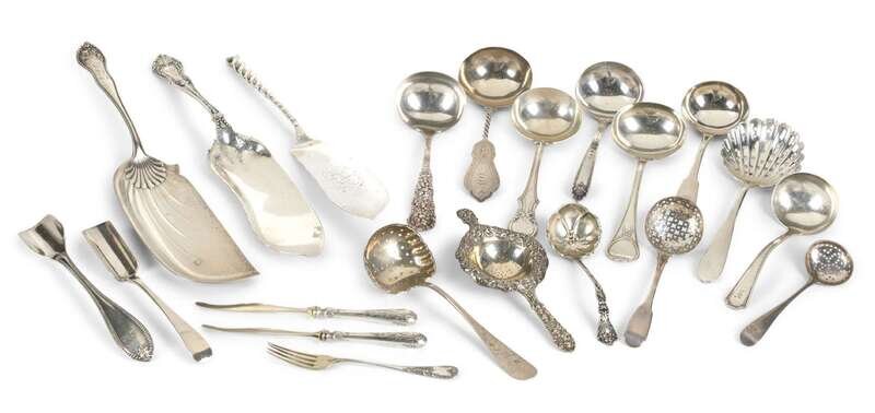 Assortment of sterling silver serving pieces and flatware 19th/20th century,