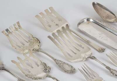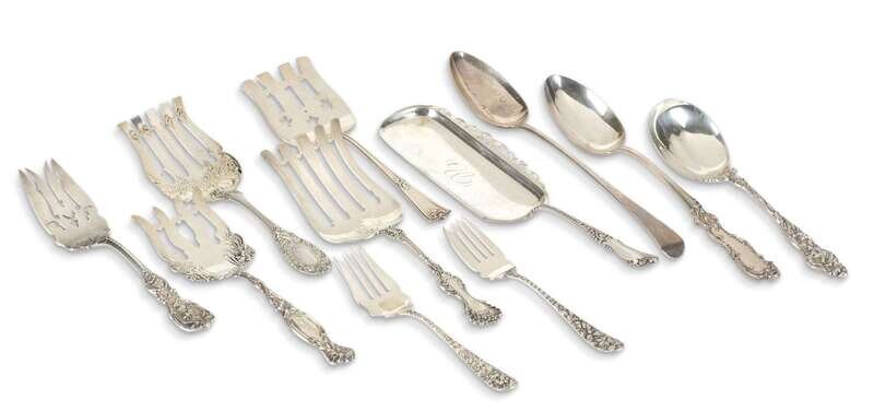 Various makers, comprising fish forks, tomato server, serving spoons (11).