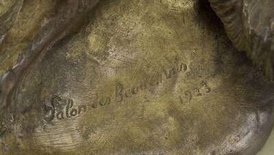 Bronze, signed in cast "CARTIER", and inscribed "SALON DES BEAUX ARTS, 1923", rests on a stone base. H: 11 in.