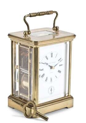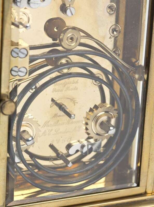No. 1750, eight day movement, white dial with roman numerals over an alarm dial, in working condition.