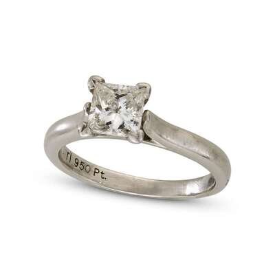 centering one princess-cut diamond, weighing approximately 0.60 carat.