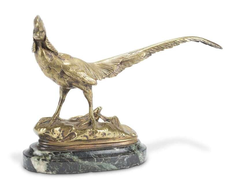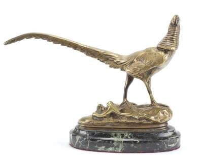 After Henri Trodoux , pheasant on stone base.