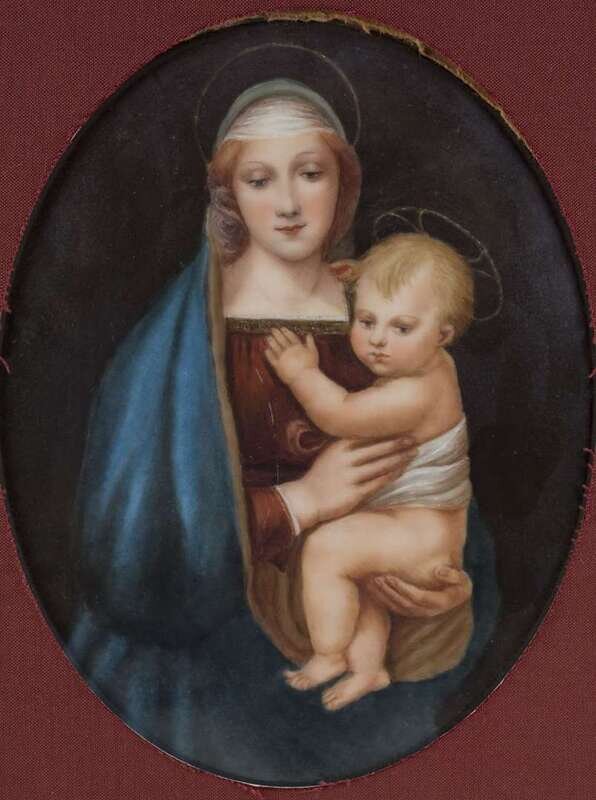 A porcelain plaque of Madonna and child after Raphael 19th century