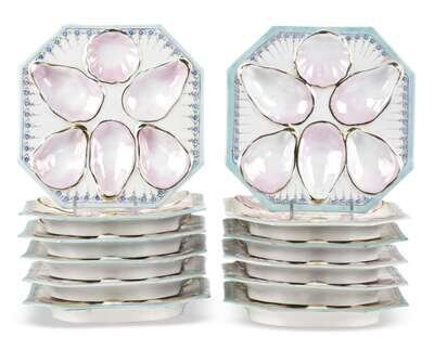 A set of twelve porcelain oyster plates french, 19th century
