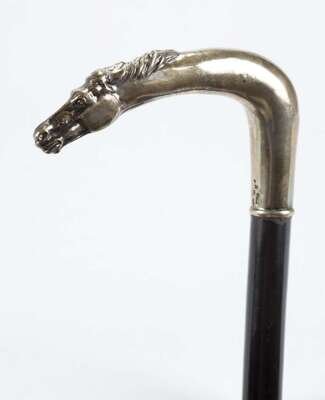 A sterling silver handle horse cane russian or german, late 18th / early 20th century