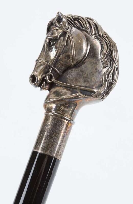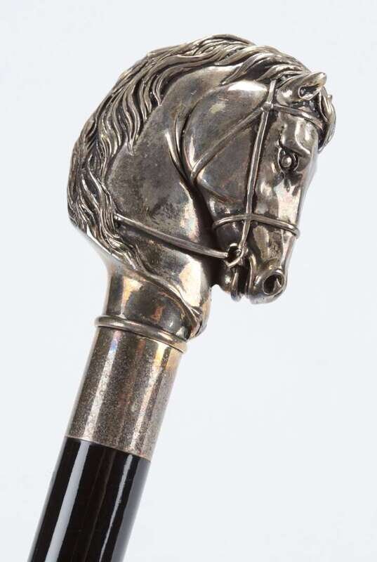 A sterling silver handle horse cane
