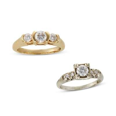 A collection of two diamond and fourteen karat gold rings