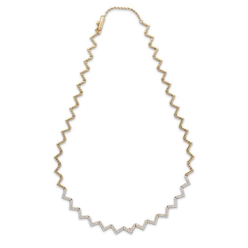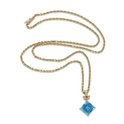 one neckchain with a topaz pendant and one set with round brilliant-cut diamonds; estimated total diamond weight: 1.95 carats.