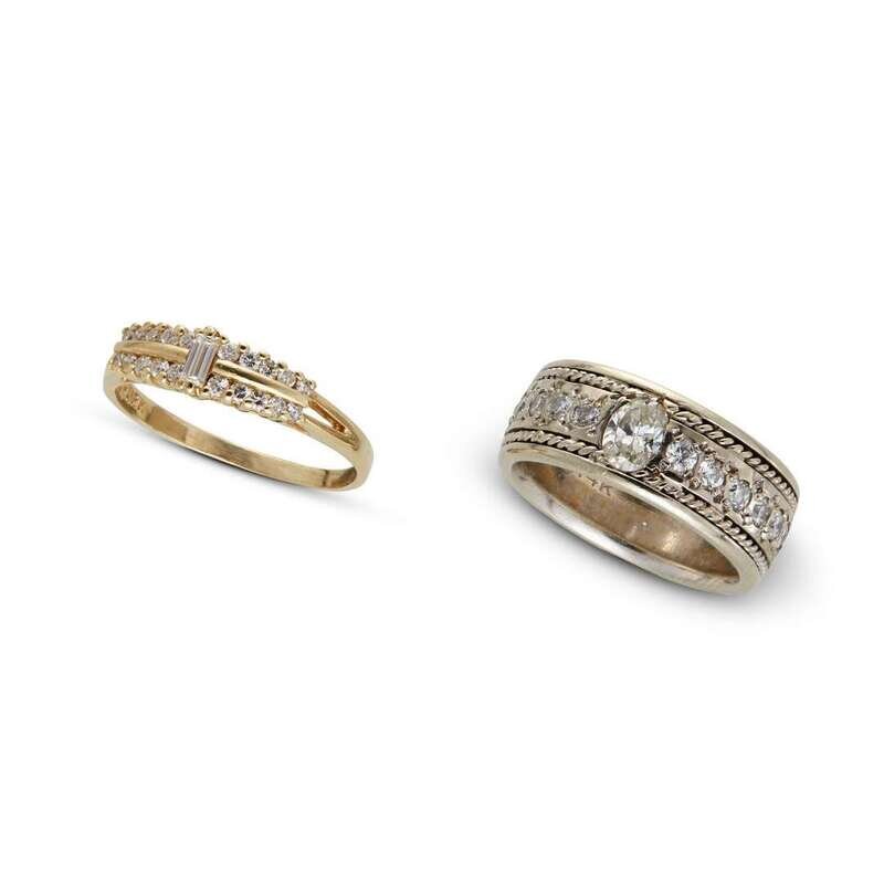 A collection of two diamond and gold bands