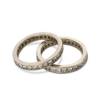 A collection of two matching diamond and platinum eternity bands