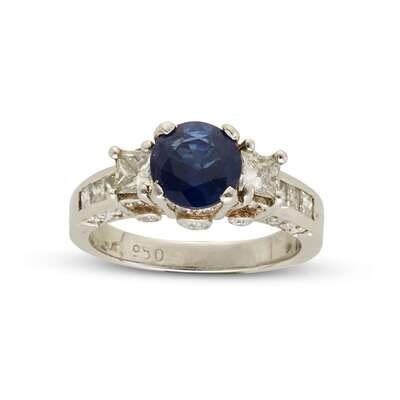 A sapphire, diamond and platinum ring