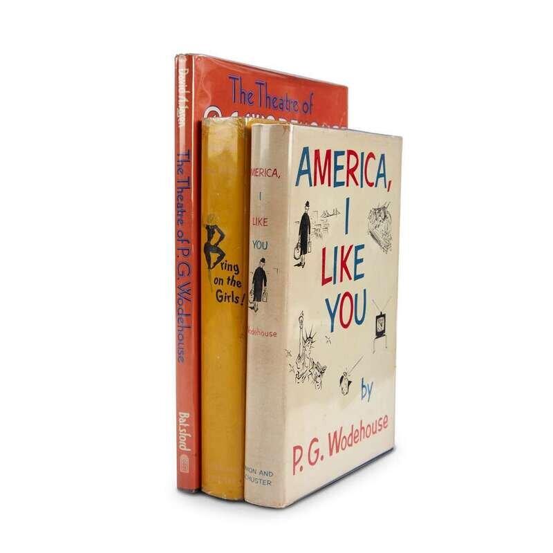 (Comic Fiction) 3 Vols. P. G. Wodehouse: Wodehouse, P.G.; Bolton, Guy. Bring on the Girls. New York: Simon & Schuster, 1953. First edition. 8vo, original cloth and boards; light wear, dust jacket (light creasing, slightly dusty). Minor spotting to endpapers. Photo plates. Internally slightly toned. McIlvaine A75a. * Wodehouse, P. G. America, I Like You. New York: Simon & Schuster, 1956. First edition. 8vo, original boards; light wear, dust jacket (slightly dusty at edges). McIlvaine A79a. * Jasen, David A. The Theatre of P. G. Wodehouse. London: Batsford, (1979). 4to, original cloth, dust jacket. Illustrated.