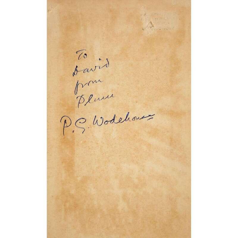Inscribed and signed in ink on front free endpaper recto: "To / David / from / Plum / P.G. Wodehouse."
