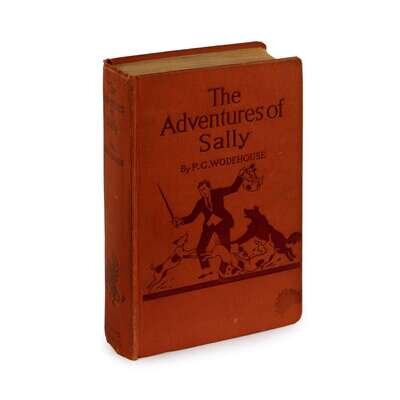 (Comic Fiction Signed) 1 Vol. Wodehouse, P. G. The Adventures of Sally. London: Herbert Jenkins, 1923. First edition. Small 8vo, original brown-stamped pictorial orange cloth; corners bumped, spine ends slightly frayed, other light edge wear, small stain at bottom fore edge corner of front cover. With 8 page publisher's advertisements at back. Endpapers a little discolored, small paper blister to front free endpaper. Book plate on front pastedown.
