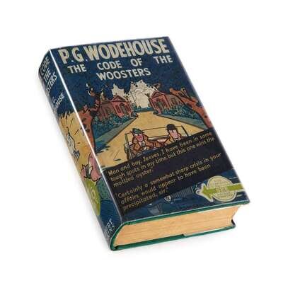 (Comic Fiction) 1 Vols. Wodehouse, P. G. The Code of the Woosters. London: Herbert Jenkins, (1938). First English edition, first printing. 8vo, original green cloth, black lettering and design, top edge stained green; light wear, dust jacket (minor edge wear). Minor discoloration to endpapers. Internally clean and complete with advertisements at back. Tight, bright, attractive copy in original, well-preserved dust jacket.