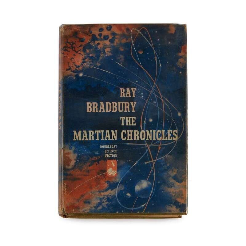 (Science Fiction & Horror : Signed Copies) 1 Vol. Bradbury, Ray. The Martian Chronicles. Garden City: Doubleday, 1950. First edition. 12mo, original green cloth; moderate wear and some darkening to edges (small chips at cover panel corners and spine panel ends, stress to cover and flap joints, a few small fissures to back flap, perhaps a little dusty). Minor spotting to endpapers. Bookplate on front pastedown. With $2.50 price at upper right of front dust jacket flap. Very Good-/Very Good copy. Signed in black ink (felt?) on front free endpaper recto.