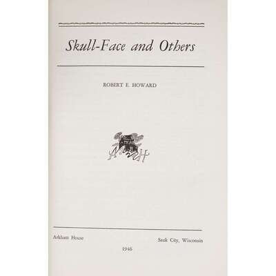 (Science Fiction & Horror) 1 Vol. Howard, Robert E. Skull-Face and Others. Sauk City: Arkham House, 1946. First edition. 8vo, original black cloth, spine gilt, dust jacket. Near Fine+ or better copy.