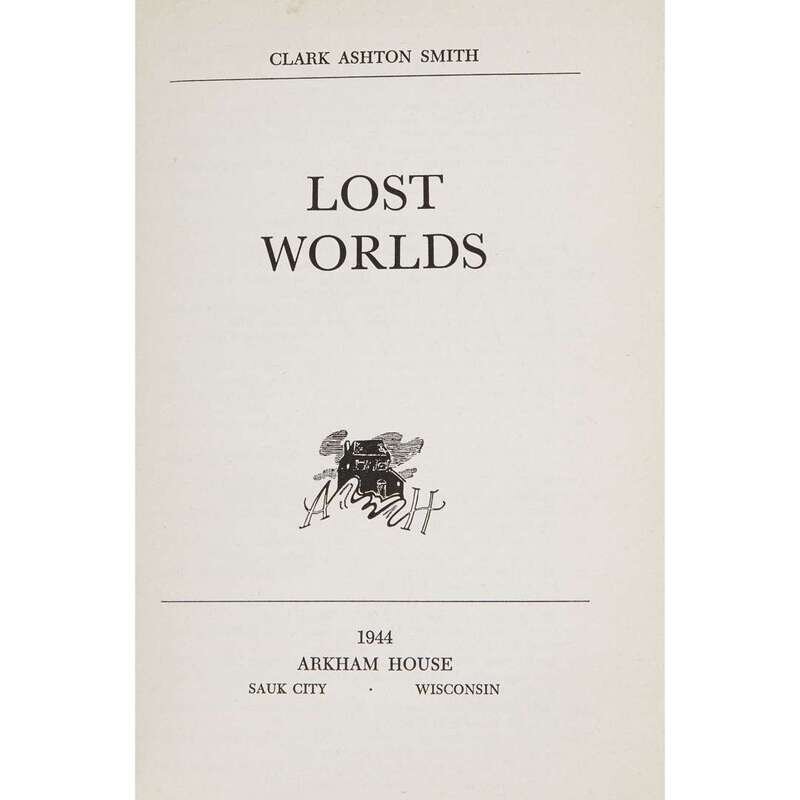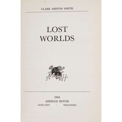 (Science Fiction & Horror : Signed Copies) 1 Vol. Smith, Clark Ashton. Lost Worlds. Sauk City: Arkham House, 1944. First edition. 12mo, original black cloth, spine gilt; corners very slightly bumped, other minor edge wear, dust jacket (minor edge wear, scattered minor spotting). Some glue residue on back free endpaper verso, scattered minor spotting to fore edges, some minor scattered internal dust smudging. But a tight, generally attractive copy.