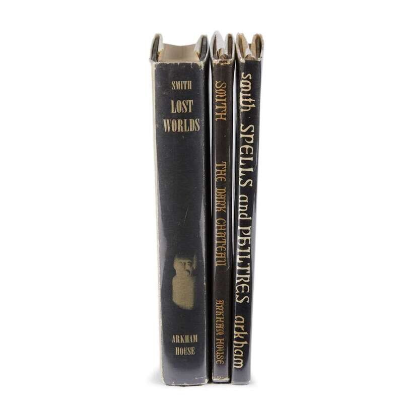 (Science Fiction & Horror) 3 Vols. Smith, Clark Ashton: Lost Worlds. Sauk City, 1944. First edition. 12mo, original black cloth; light wear, dust jacket (light wear at edges and joints). Internally clean. Near Fine-/Near Fine. Jaffery 7. * The Dark Chateau. Sauk City: Arkham House, 1951. First edition. 12mo, original black cloth; minor wear, dust jacket (light edge wear). Internally clean. Near Fine/Near Fine+. Jaffery 42. * Spells and Philtres. Sauk City: Arkham House, 1958. First edition. 12mo, original black cloth; minor wear, dust jacket (minor edge wear, close tear at extending 1 1/2 inches; 30 mm diagonally down from top joint of front flap - no or negligible paper loss). Red ink numerical inventory stamp on front free endpaper. But a tight, bright copy, in bright dust jacket. Jaffery 51.
