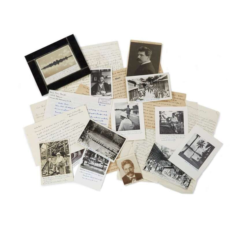 (History of Medicine : Theology) Lot of Manuscript Material. Schweizter, Albert and Lenel, Toni. Archive of Autograph Letters Signed, Photographs Signed, Typescripts, and Related Material. Approximately 75 pieces in sum, chiefly addressed to Schweitzer's goddaughter Toni Lenel. Diverse topics including e.g. war, diaspora, persecution, pedagogy, literary criticism, colonialism, race, gender, and private family affairs. Documents range ca. early 1920's - mid 1960's, until the end of Schweitzer's life. Full listing available.